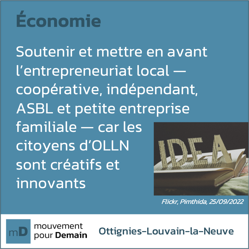 Cette page reprend une série de projets ou idées qui émanent de discussions et échanges qui ont eu lieu avec des citoyens d'Ottignies-Louvain-la-Neuve.
