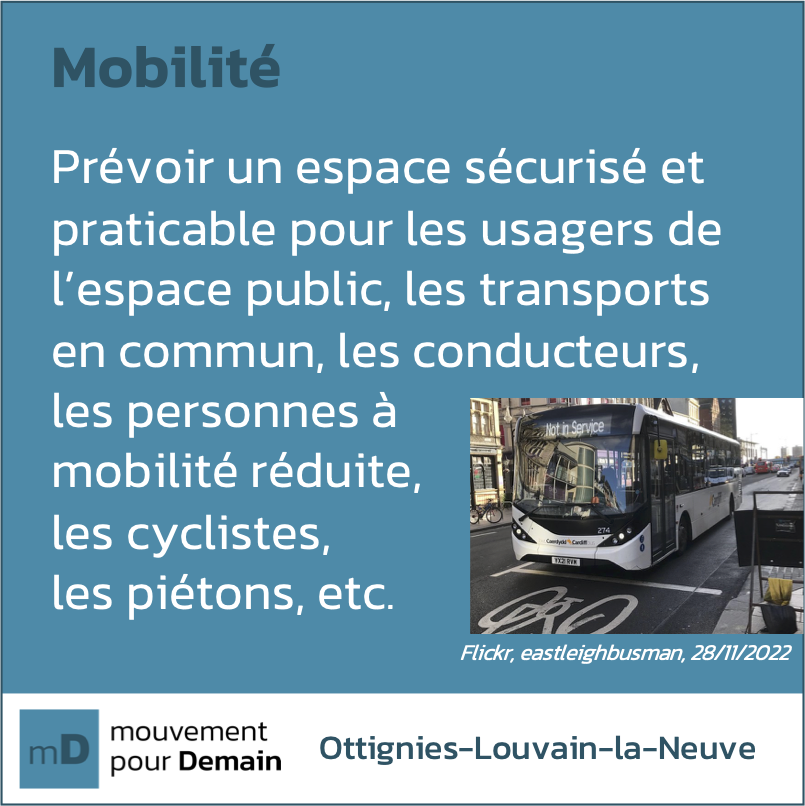 La Ville d'Ottignies-Louvain-la-Neuve devrait être attentive à tout cela, pour les nouveaux projets impliquant des voiries ou lorsque des maintenances et rénovation sont planifiées. Si chaque type d'usager a son espace dédié, alors tout le monde pourra se déplacer de manière plus sécurisée et sereine 😊